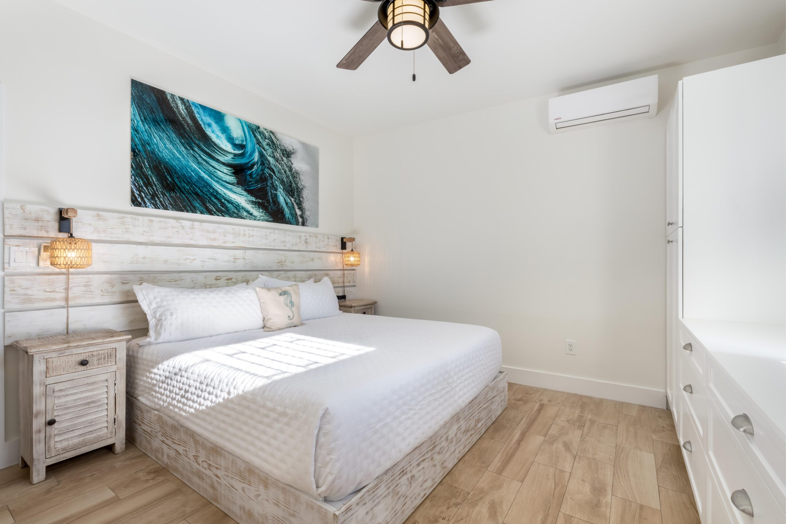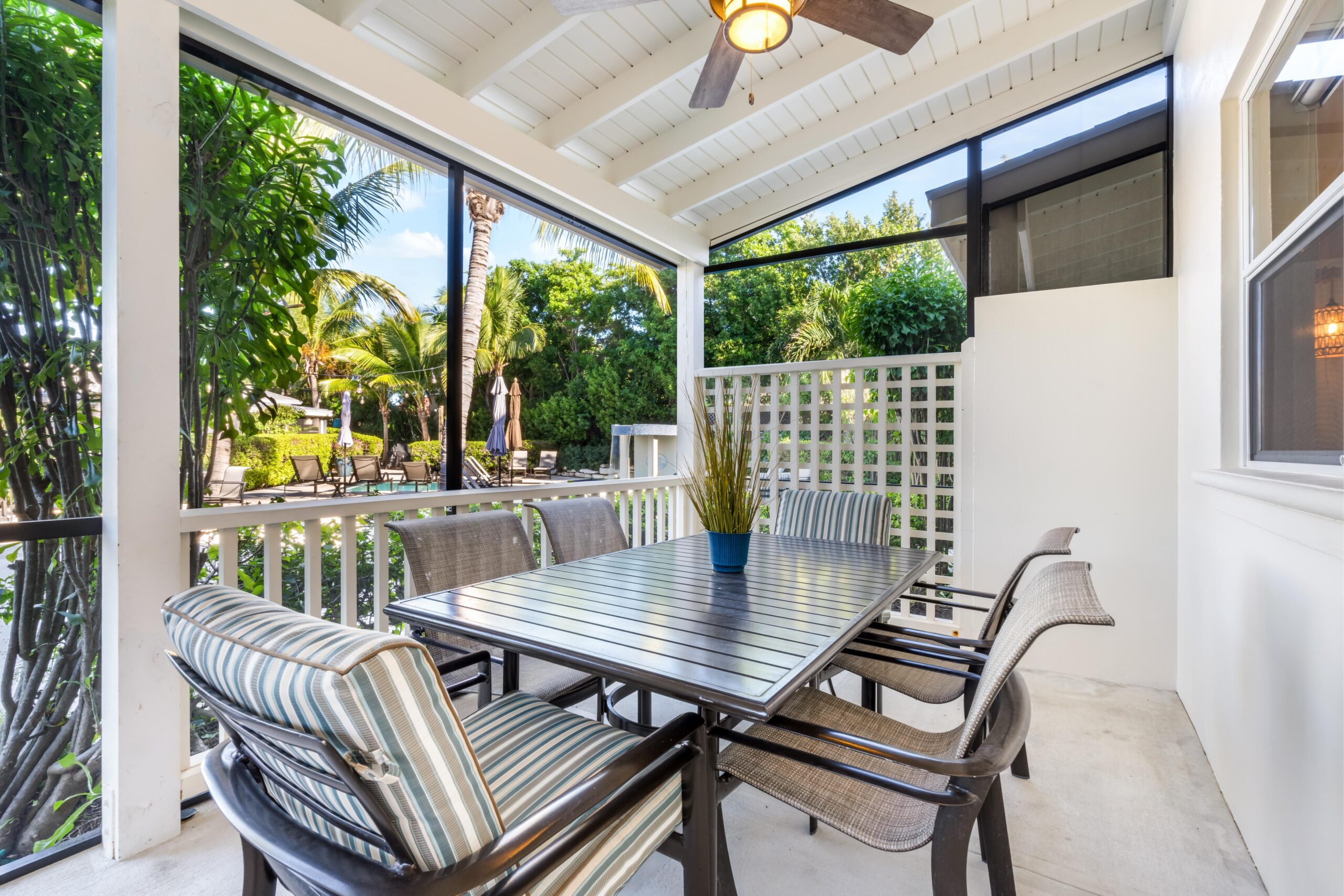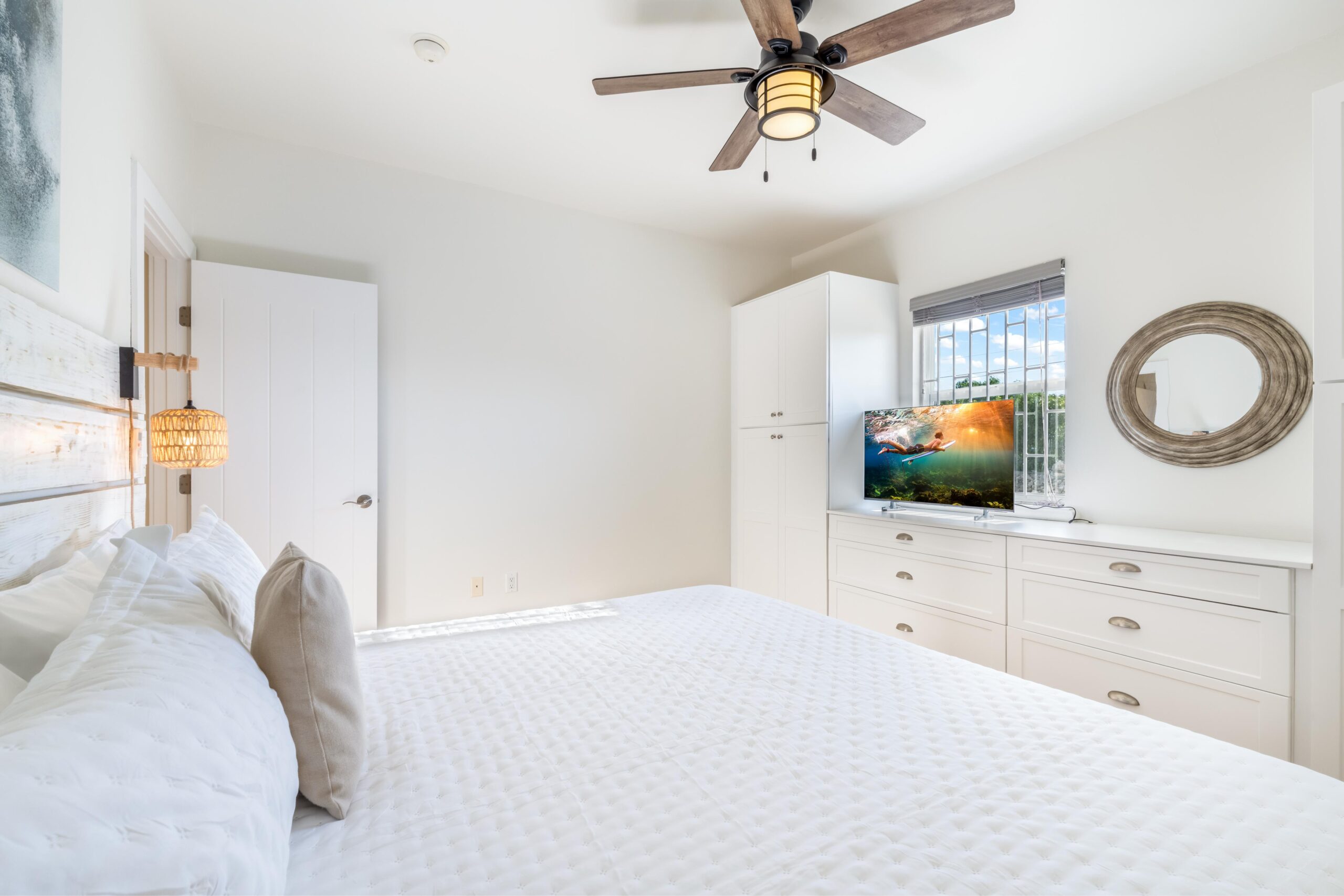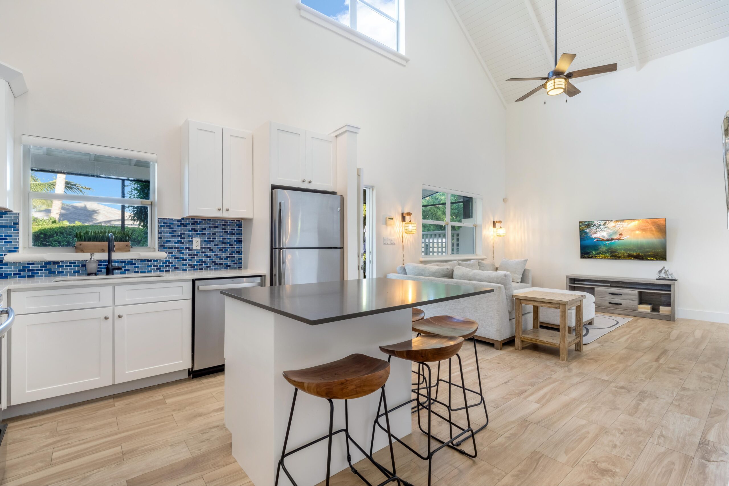 Harmony Palm is located in the heart of Grace Bay. Walking distance to restaurants and Grace Bay Beach. Newly decorated 3 bedroom villa with 2 bathrooms. Full size washer and dryer. Full kitchen with new appliances. Screened in porch for outside dining and lounging at night. 60” smart tv in living room. Inside dining available as well. Access to 3 bbq on property, free secure parking, two pools and loungers in a boutique like atmosphere.